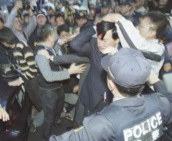 中新網3月13日電 據臺灣《中國時報》報道,國民黨“立委”費鴻泰等四人,十二日偕同臺當局“財政部長”何志欽等官員前往謝長廷競選總部,引發謝總部工作人員和支持者包圍,并指控“私闖”報警處理。警方獲報趕抵現場,卻和“立委”一起被大批黨工和群眾團團包圍,演變成沖突事件。
