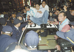眼見已發生警民沖突,臺北警方立刻提高處理層次,先由中山分局出動各派出所待命警力,并調派保安大隊五十名警察趕到現場,利用優勢警力,把警車團團圍住。
