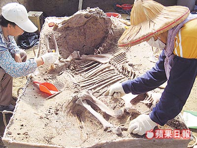 考古隊成員指出,今年春節后,隊員在緊鄰致遠管理學院南側鳳池考古區內工作時,第一次在地表一公尺下挖出一完整的馬匹遺骸,“猶如刻意保留下來一般!标爢T表示,過去經常發現狗、豬、牛的遺骸,但都不完整。
