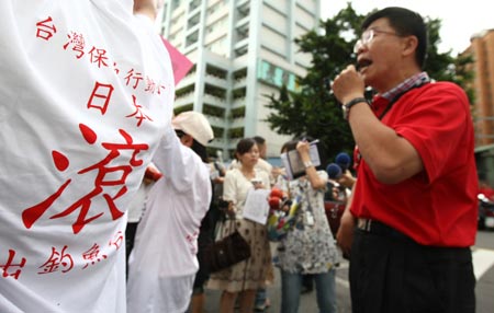 臺北縣永和市民代表黃錫麟帶領(lǐng)數(shù)名民眾在現(xiàn)場抗議,要求日本政府立即放人并且離開釣魚島。
