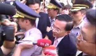 中新網7月21日電 陳水扁卸任后21日首次以被告身分出庭應訊,臺北地方法院提高警力戒護,內外周圍布滿維安人員,總共出動將近200名警力,不過陳水扁臨時改變路線,從臺北地檢大門進入,讓現場秩序一度陷入混亂。