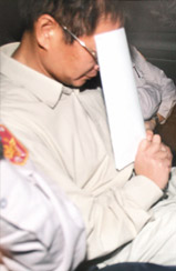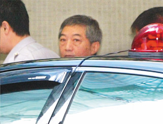 吳淑珍胞兄吳景茂(中),昨天又被特偵組借提訊問,他面露無奈的向外探望。(臺灣《聯合報》圖)