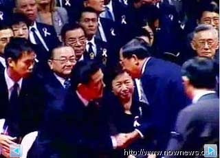 11月8日上午臺塑創辦人王永慶告別式上,陳水扁主動伸手趨前與馬英九握手致意。