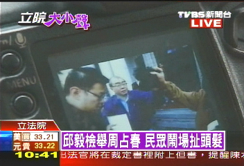 中新網12月15日電 綜合臺灣媒體報道,陳水扁日前遭到無保釋放,“立委”邱毅今天(15日)前往“監察院”檢舉承辦法官周占春瀆職,不過沒想到步出“監察院”時,與綠營民眾發生肢體沖突,甚至有人一把扯下邱毅的頭發。