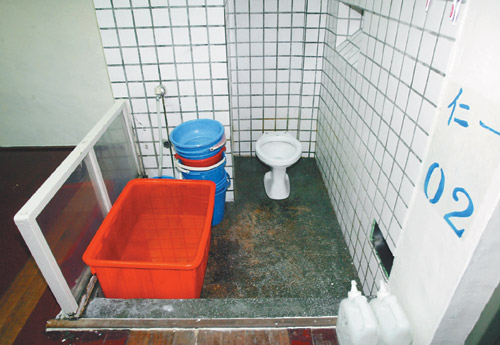房舍中浴室兼廁所,陳水扁只能蹲著洗澡。圖片來源:臺灣《聯(lián)合報》