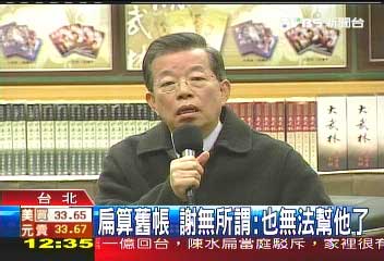 謝長廷說,“他其實也曾經握著我的手,眼眶泛紅講說,他只要生命在一定會報答我,也曾經有這樣的鏡頭,我也覺得那是事實的,他怎么講都沒有關系,因為我已經沒有辦法幫助了。”