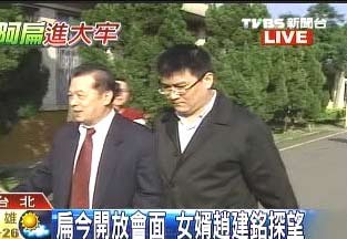中新網2月1日電 據臺灣TVBS報道,陳水扁女兒陳幸妤31日只身前往美國,今天(1日)上午陳水扁女婿趙建銘到看守所探視陳水扁,不過對于妻子出境所為何事,趙建銘面對提問,則沒有回應。