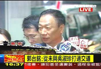 記者問:“關(guān)于吳淑珍陳報(bào)狀所述,3000萬的政治獻(xiàn)金,是由您這邊支付的嗎?”郭臺銘說:“我回答,沒有。”記者再問:“沒有捐款給扁家3000萬嗎?”郭臺銘重申:“沒有。”記者接著問:“那怎么會傳出這樣的說法?”郭臺銘面露無奈地說:“我也不曉得。”