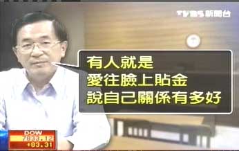 陳水扁說“我太太身體不方便,都是用電話聯(lián)系,有人就是愛往臉上貼金,說自己關(guān)系有多好,明明只到過官邸接待室,就說自己天天走官邸,辜仲諒就是其中一個(gè),我不可能有那么多時(shí)間,一個(gè)禮拜見他一次,他卻出去就講,我跟陳水扁關(guān)系有多好,樹大招風(fēng)就是這樣。”