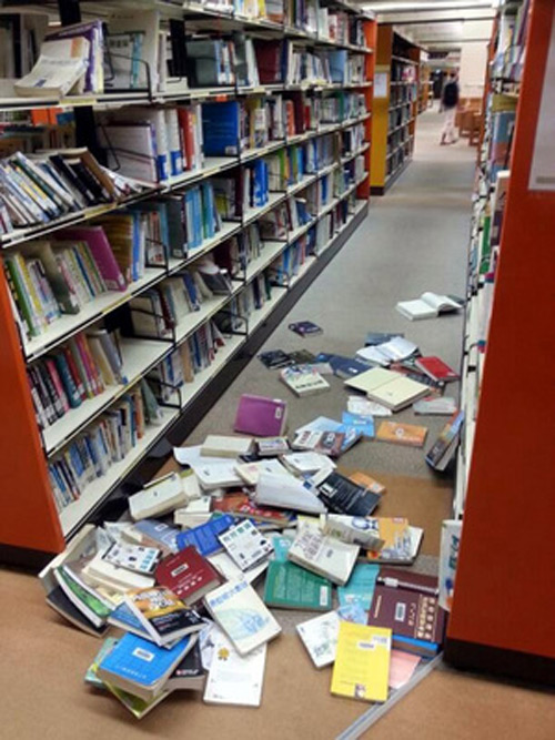 臺灣南投6.7級地震 圖書館書籍掉落一地