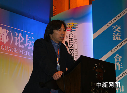 最后一點,就是海外華文媒體怎么樣跟中新社共同一塊做一些事情。我上午就說過了,中新社牽頭,我們可以建立一個網(wǎng)絡(luò)平臺,也許一個星期就可以做出來,鏈接式的,把世界華文媒體,用點擊的方式,比如西班牙,一點擊,當?shù)氐膱蠹埦涂梢猿尸F(xiàn)出來,這給中國人華文媒體在海外交流信息是一個很好的平臺,同時中新社也可以形成一個把大家結(jié)合起來的團隊,共同去做這件事情,同時還有一些商業(yè)的合作機會,包括土地、房屋買賣和旅游。假設(shè)我去歐洲旅游的時候,我只要是有這么一個平臺,我一點擊就可以從那邊拿到東西。再一個,大家在海外去做華文媒體的時候,做LOGO新聞的時候,通常會東抄西抄,但是互相抄的時候就有重復(fù)了,我隨便看一下,假設(shè)是德國的報紙我看得津津有味,我在美國呆著,從來不知道德國的報紙是什么樣。我基本上是這么幾點,和大家分享一下中國的問題和可以操作的解決方式。謝謝。