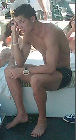 C•羅結束世界杯后,未有趁空檔多多陪伴親兒,反而飛往紐約度假,與俄羅斯模特兒女友莎爾克風流快活,獨留兒子在葡萄牙交由親母照顧。C•羅在泳池曬太陽期間被拍下“艷照”,一身古銅色肌膚令不少女“粉絲”口水長流,但10只腳趾甲涂上較膚色更黑的甲油,比他的俊俏臉龐更搶鏡。C•羅身為“潮人”,應會把打扮之道傳給剛出生的兒子。