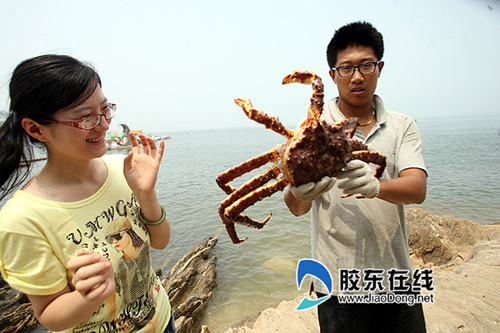 “一只螃蟹6斤重,展開之后一米長,和章魚哥一樣,擅長預測……!必撠熆答B帝王蟹的煙臺市民小魏這樣告訴記者。7月13日,本網以《好大一只帝王蟹 重3公斤價值1700元》為題報道了市民矯先生從俄羅斯購進的大螃蟹,一時間吸引了眾多看稀奇的游客和市民。相隔不到一個星期,其中一只名叫“霸王”的超大螃蟹爆出猛料,因為它要向世界杯明星保羅章魚哥發出挑戰,預測所有魯能比賽。