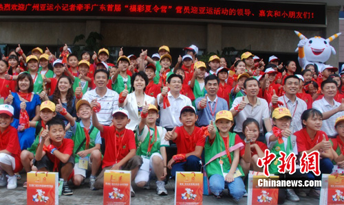 中新網(wǎng)廣州8月19日電 (記者 莫非 程景偉)“這是一次令人難忘的活動,我們了解有關(guān)亞運的知識、參觀亞運訓(xùn)練場,還了解了運動員如何通過訓(xùn)練,換來好成績。”來自粵北韶關(guān)的留守兒童劉梅霞告訴記者。19日下午,由廣東團省委、廣東省福彩發(fā)行中心等單位聯(lián)合舉辦的“我為亞運添光彩”——廣州亞運小記者牽手廣東“福彩夏令營”營員迎亞運活動在冠軍訓(xùn)練營——廣州體育職業(yè)技術(shù)學(xué)院舉行。
