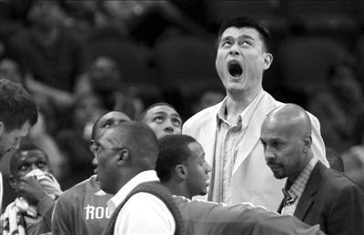 上個(gè)月的季前賽,姚明觀戰(zhàn)。