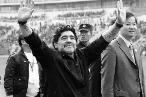 15時30分,離比賽規(guī)定開始的時間已經(jīng)過了半小時,球場上空空如也,球迷們開始不滿,敲著鼓喊著馬拉多納的名字。15時50分,看臺上一陣歡呼,馬大帥駕到。他邊走向主席臺邊沖球迷們揮著手,還不時送個飛吻。為表遲到的歉意,老馬要求到場地走一圈。