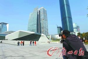 11月18日,花城廣場空氣透明度相當高,不少攝影發燒友在此拍下城市美景。記者楊勤 攝