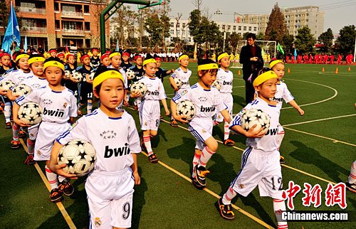 下午,陽光燦爛。來自10所小學的300名女足小隊員身著球衣和運動裝,各自抱著一個足球整齊列隊出場。稚氣的臉配上氣勢十足的口號,讓人感到格外意氣風發。