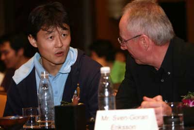 趁著本周沒有比賽,昨天孫繼海和英超曼城主帥埃里克森亮相上海,參加搜狐與PG(超級足球公司)的合作活動。曼城主帥埃里克森表示,曼城有望在明年五六月份來中國。