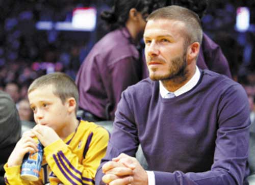 昨天凌晨,湖人在主場以128∶114擊敗掘金,取得季后賽開門紅。湖人隊比賽的座上客貝克漢姆當然也沒錯過這場精彩對決,身穿藍色毛衣的小貝攜兩愛兒來到斯坦普斯球館現場觀戰,也愉快地見證了自己支持的球隊大獲全勝。