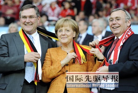 默克爾是2005年上任的德國第一位女總理,她是德國政壇公認的、以冷靜理性著稱的“鐵娘子”,可時下卻為足球癡狂。