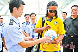 廣州機場迎來巴西國奧隊 小羅過穗"風一陣"(圖)
