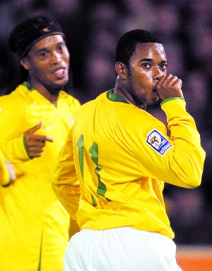 本場比賽從排兵布陣上就可以看出巴西隊拿出了真本事。鋒線排出目前所能排出的最強組合,小羅、羅比尼奧、法比亞諾組成三叉戟。鄧加把最大的希望寄托在羅羅組合上,尤其是剛剛以4200萬歐元的身價轉會到曼城的羅比尼奧。在最近的訓練中,鄧加和羅比尼奧反復交談,很顯然,羅比尼奧是鄧加的關鍵一步棋。小羅在AC米蘭的聯賽首戰表現出色,贏得滿堂喝彩,加之卡卡因傷缺席,小羅回到首發陣容也不意外,這是他時隔一年后再度代表巴西國家隊出場。賽前,小羅表示自己希望和羅比尼奧搭檔:“與羅比尼奧踢球挺好的,因為他反應和思考特別快。”而主帥鄧加也講道:“小羅能頂在前面,在前場左路,這也是他發揮最出色的一個位置。他和羅比尼奧可以一起首發,他們都是能獨自解決比賽的球員。”