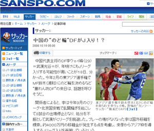 李瑋鋒即將加盟日本J聯賽的消息最早見諸于17日的日本雅虎體育。當時,雅虎體育就以“功夫足球將登陸日本?”為題,曝出了中國國家隊主力李瑋鋒即有可能在明年初加盟J聯賽,并稱李瑋鋒“作為最強最兇悍的后衛,堪稱中國功夫足球的代名詞”。19日,日本產經體育等多家媒體進一步證實了這一消息,并稱“動粗小子”李瑋鋒的到來不 啻為一場“恐怖襲擊”。
