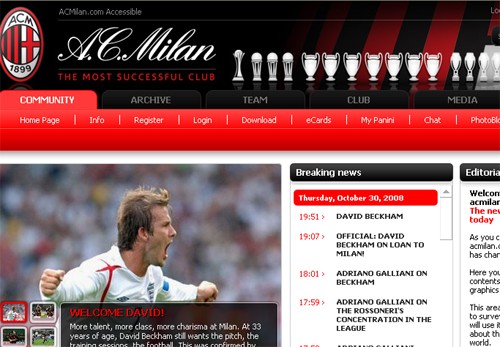 AC米蘭俱樂(lè)部官方網(wǎng)站截屏