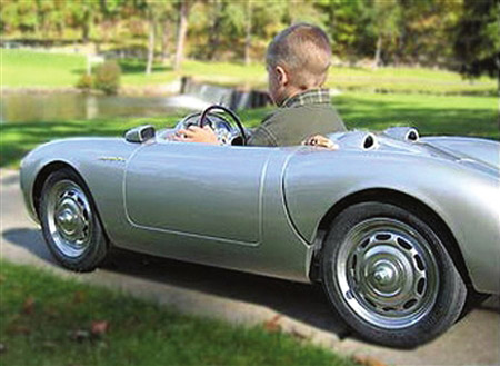 如今,9歲的布魯克林已經(jīng)擁有了自己的第2輛豪車——超小精致版保時(shí)捷跑車,這輛車是保時(shí)捷手工制造的,停車場還為小跑車專設(shè)停車位。可別小瞧了這輛超小精致版保時(shí)捷跑車,那可是真刀真槍喝油的豪華跑車!這輛保時(shí)捷價(jià)值近5萬鎊,柴油驅(qū)動(dòng)。小車雖小,但與真正的汽車沒有什么區(qū)別,不過小布魯克林不能用這輛豪華玩具車載他的小女朋友去兜風(fēng),因?yàn)槭菃巫穆铩?