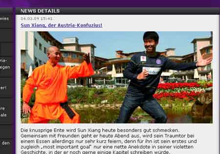 文章最后寫道,孔夫子(Konfuzius)在中國是偶像般的完美化身,而孫祥的積極態度也讓維也納的球迷們留下了深刻的印象,并博得了教練和隊友的好感。