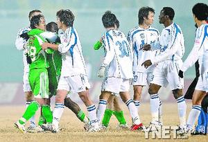 如果這次還可以說(shuō)是裁判的失誤,那終場(chǎng)之后雙方的沖突就只能說(shuō)是天津隊(duì)的責(zé)任了:比賽結(jié)束之后,郭輝與譚望嵩發(fā)生了口角,后者手上有了推搡的動(dòng)作,一直克制的郭輝卻在這個(gè)時(shí)候被對(duì)方外援多烏達(dá)搧了一個(gè)耳光!此舉徹底激起了國(guó)安替補(bǔ)席的怒火,而天津的教練組和替補(bǔ)隊(duì)員也馬上進(jìn)入了球場(chǎng)之中,雙方發(fā)生了肢體上的沖突,杜文輝的右眼角被重重打了一拳,瘀青的痕跡非常明顯。而天津隊(duì)隊(duì)長(zhǎng)曹陽(yáng)和外援多烏達(dá)在走進(jìn)更衣室之前更是向看臺(tái)做出了不文明的手勢(shì),也將有可能受到足協(xié)的追加重罰。