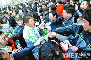 昨天上午9點(diǎn),新賽季國(guó)安主場(chǎng)比賽套票在工人體育場(chǎng)正式發(fā)售。重回福地工體讓京城球迷的熱情重新迸發(fā),工體和國(guó)安在北京城的人氣也開始重新凝聚。而國(guó)安一線隊(duì)隊(duì)員到場(chǎng)與北京球迷見面引發(fā)的效應(yīng)更加驚人:8000張?zhí)灼币惶熘畠?nèi)全部售完,國(guó)安俱樂部不得不考慮再加印2000套,以滿足球迷的需求。