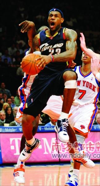 不過兩天前比賽的最后,麥迪遜花園球館里滿場響起“MVP”的呼聲,昨天的“皇帝”卻沒能享受如此待遇,雖然紐約人依舊對明年詹姆斯的加盟充滿期待,但主隊昨天直至最后仍未放棄獲勝希望讓主場球迷無法倒戈,終場前1分鐘尼克斯還僅以100比102落后兩分。可惜詹姆斯隨后以個人第11次助攻幫助伊爾戈斯卡斯上籃成功,終場前22秒又搶下關(guān)鍵籃板迫使對手犯規(guī),兩罰兩中完成了自己的得分50+,尼克斯無力翻盤。