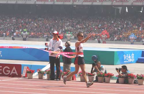 澳大利亞選手扎里德-塔蘭(Jared Tallent)沖過(guò)終點(diǎn)線瞬間。(圖片來(lái)源于北京奧運(yùn)官網(wǎng))