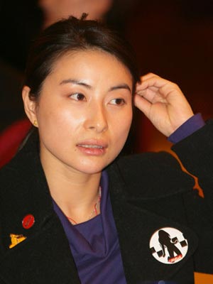 郭晶晶在活動期間,梳理自己的頭發。