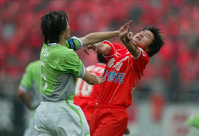 路易斯何許人也?怎能吃這種暗算的啞巴虧?說時(shí)遲那時(shí)快,路易斯一個(gè)鷂子翻身騰空而起,右腳一記勢大力沉的“追心腿”,準(zhǔn)確命中倒地的李志海背部。隨即路易斯吃到紅牌被罰下場,而在中國足協(xié)賽后的追加處罰中,肇事的路易斯和“罪魁”李志海均被處以八場禁賽。
