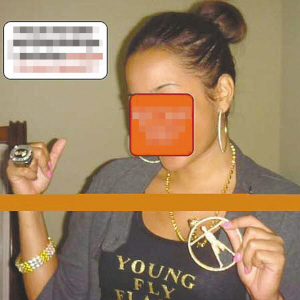 NBA巨星韋德剛剛向好萊塢女星尤尼昂求婚成功,結果又傳出緋聞。一名少女(上圖)將一組相片寄給網站,稱韋德和她一夜情后感覺很爽,大方地將大堆禮物送給了她,其中包括韋德唯一的總冠軍戒指(上圖)、佩飾金項鏈以及貼身T恤衫等。