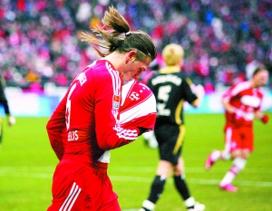 最先掀起“愛情風暴”的是當下狀態大勇的法國球星里貝里,他本場特意穿上粉紅球鞋戴上紅色手套,活脫脫一個紅色小精靈。第29分鐘他的任意球直接破門,為球隊很快扳平了比分。這也是里貝里連續第6場聯賽進球,激動的他在進球后特別親吻了寫有妻子瓦希芭(Wahiba)名字的左手腕繃帶。半場結束前,中衛德米凱利斯收獲進球。阿根廷人進球后令人意外地撿起球將它包進球衣里,做出孕婦的姿勢。原來這一幕是獻給他已經懷孕的女友伊萬格利娜的。下半場,拜仁的進球風暴并未停歇,而表達愛意的慶祝動作也似乎可以傳染?寺鍧蓪⒗镓惱锏膫髦星蝽斎牒螅斐鋈种,指代妻子希爾維婭和雙胞胎兒子。此后托尼和奧多配合后破門,意大利人也特別親吻著左手,原來大拇指上戴有未婚妻瑪塔送他的戒指。
