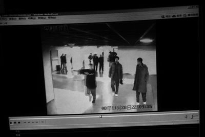 22點07分 劉煒第一個從客隊休息室出來,徑直向攝像頭方向走來,他的身后陸續跟出了蔡亮等7到8個上海隊隊員,劉煒(注:當時劉煒第一個走出了攝像頭的監控范圍)張望一會后,便返回了客隊休息室,跟劉煒出來的隊員也往回撤了一段距離,剛好正正的站在攝像頭下面。