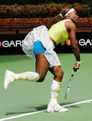 世界排名6 什么樣的衣服小威都敢穿出來秀,問題是在大太陽下,有必要網眼裙再配上黃白雙色及膝戰靴嗎?