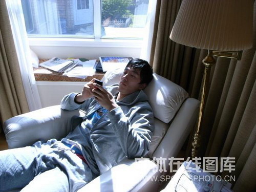 劉翔在住所內玩手機