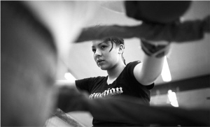 謝莉的19歲生日還差兩周,她的對(duì)手26歲,報(bào)名體重只比她重2公斤,看起來(lái)卻遠(yuǎn)遠(yuǎn)比謝莉壯得多也高得多。霍克看到她脖子上和手臂上還有文身,好像在監(jiān)獄待過(guò)。和電影里伊斯特伍德飾演的教練一樣,霍克信奉的第一信條也是“保護(hù)自己永遠(yuǎn)是第一位的”,于是他找到了拳賽組織者。
