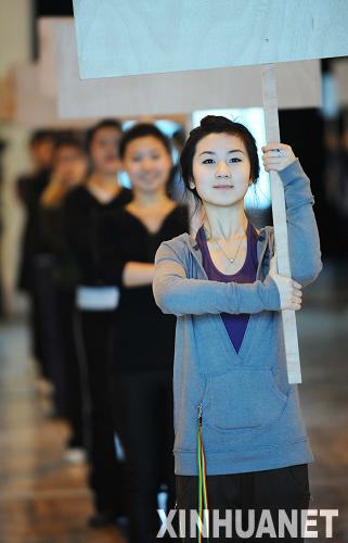 11日12時(shí)40分,70個(gè)女孩來到現(xiàn)場(chǎng)后,持牌手的總教練汪燕引導(dǎo)女孩們進(jìn)行走位,讓女孩熟悉開幕式當(dāng)天的入場(chǎng)順序,這是進(jìn)入場(chǎng)館訓(xùn)練的第三天。汪燕是黑龍江職業(yè)技術(shù)學(xué)校的校長,據(jù)她介紹,這70個(gè)女孩都是大冬會(huì)禮儀小姐,其中有44個(gè)女孩是倍受矚目的持牌手。