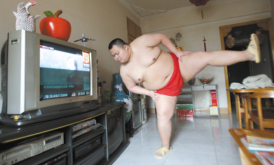 短短4年時間,體重從70公斤增加到了至少150公斤,沙坪壩區(qū)陳家灣一胖哥喜歡上了冷門的相撲運(yùn)動,并打算3年后自費(fèi)前往日本學(xué)習(xí)相撲術(shù),成為一名職業(yè)相撲手。這名“重慶相撲男”的照片一貼上網(wǎng)就成了網(wǎng)絡(luò)紅人。由于重慶的相撲選手只有他一個,一直找不到合適的對手過招,無奈之下,前日晚上,這位紅人在天涯上發(fā)帖,正式邀請一位泰拳選手進(jìn)行一場另類的比賽。