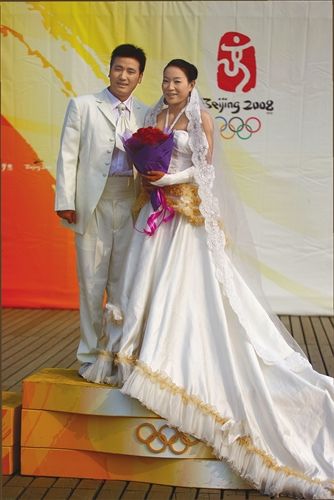 北京奧運(yùn)會(huì)后,帆板冠軍殷劍就開(kāi)始籌備自己的婚禮,青島的一家影樓接到了為這位奧運(yùn)會(huì)冠軍拍攝婚紗照的任務(wù)。他們的婚紗照可謂是體育風(fēng)格十足,除了在奧運(yùn)會(huì)領(lǐng)獎(jiǎng)臺(tái)上、船上的寫真造型外,她的婚禮還是定在了邛海上舉行,一切無(wú)不突出了北京奧運(yùn)會(huì)帆板冠軍的身份。