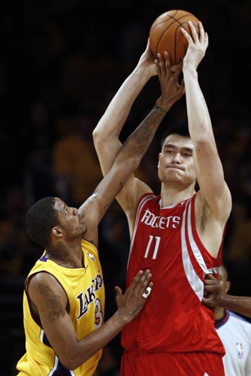 中新網(wǎng)5月5日電 北京時間今日,NBA西部半決賽第二場比賽繼續(xù)進(jìn)行,由休斯敦火箭隊客場挑戰(zhàn)湖人。姚明打出了堪稱是自己職業(yè)生涯最偉大的一場比賽:他在第四節(jié)遭科比撞傷膝蓋,但毅然拒絕了隊醫(yī)回更衣室接受治療的提議,仍舊堅持上場。最終姚明砍下28分10個籃板2次封蓋1次搶斷,火箭也得以在客場搶下一場寶貴的勝利。