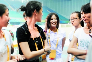 馬晨菲:我和杜鋒的認識說起來挺有意思。當時我與杜鋒都在國家體育總局大院訓練并都在清真食堂吃飯。有一次,我們游泳隊的幾名女孩一起在食堂吃飯,大家都在邊開玩笑邊議論說“某某隊的某某某是我的偶像!”我當時也在想:從小到大,只有父親才是我的偶像,除此以外我好像真的再沒有偶像。不行,我也得跟她們一樣找一個偶像!叭绻F在誰從食堂進來,誰就將成為我的偶像!痹捯粑绰,一個高大英俊的帥哥走了進來———他就是杜鋒。當時我還不認識杜鋒。準確地說,是我第一次注意到他。