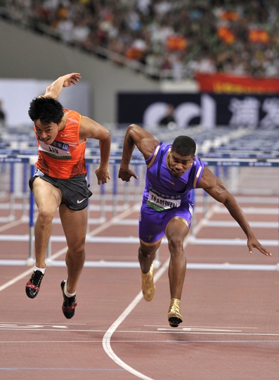 發令槍響,或許是許久未上賽場的緣故,劉翔起跑稍顯猶豫,特拉梅爾沖到了前頭。但“飛人”很快找到狀態,并充分利用自己后半程的加速能力,與特拉梅爾之間的距離也越來越小。在過第十個欄時,兩人已是齊頭并進,在全場觀眾的吶喊聲中,兩人同時撞線過關。最后經由高速攝像機判定,查美爾有效部位先過終點。