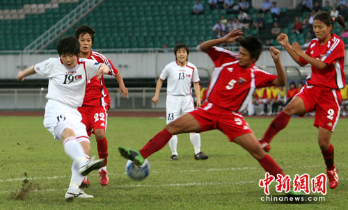 中新網(wǎng)成都5月22日電(記者劉忠俊 劉賢)22日舉行的2010年亞足聯(lián)女子亞洲杯A組小組賽緬甸隊(duì)與朝鮮隊(duì)之戰(zhàn)在成都體育中心舉行,緬甸隊(duì)以0:2負(fù)于朝鮮隊(duì)。5月24日朝鮮將與日本隊(duì)相遇,兩隊(duì)之間必有一場(chǎng)精彩之爭(zhēng)。23日,中國(guó)隊(duì)將迎戰(zhàn)澳大利亞隊(duì)。(完)